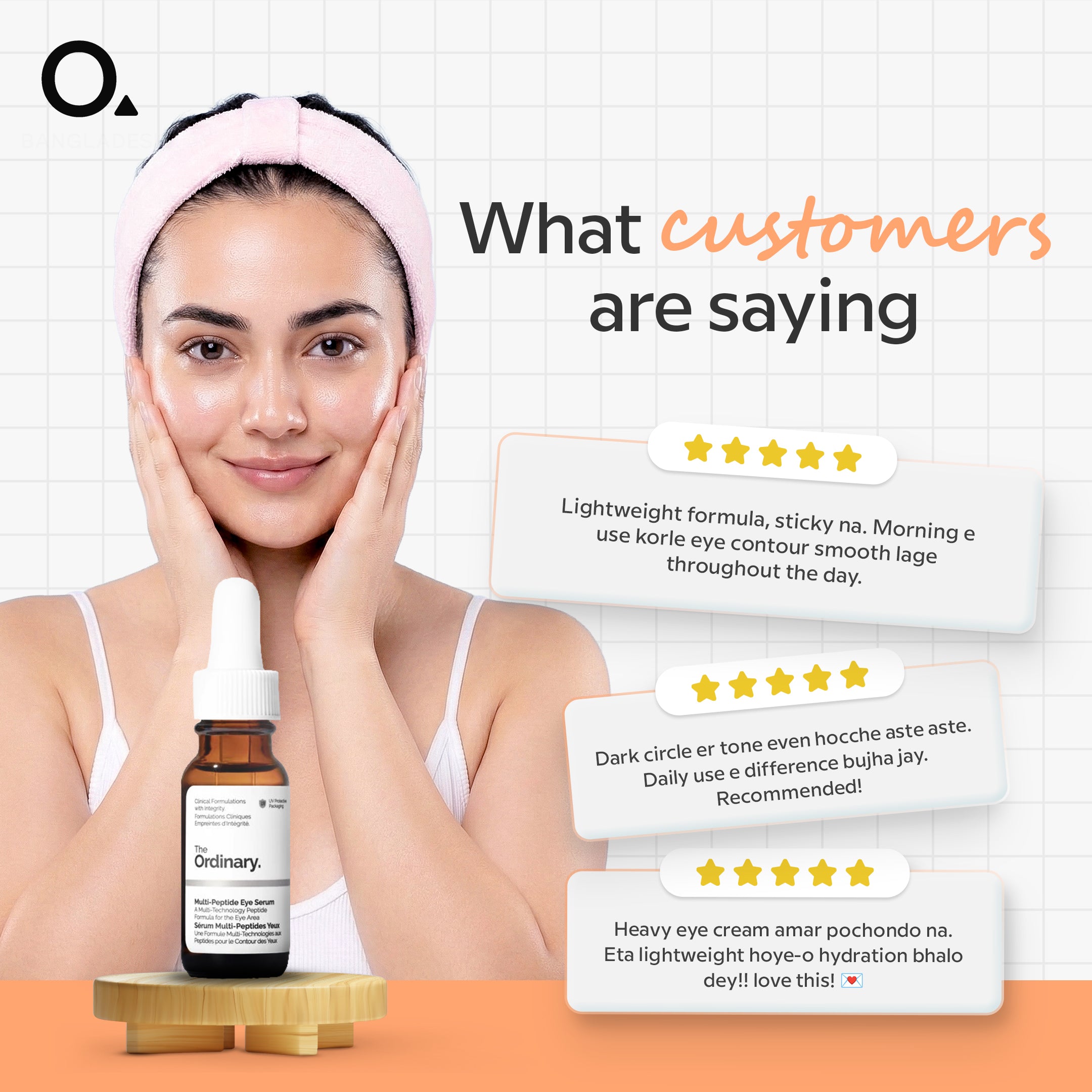 Multi-Peptide Eye Serum is a water-based formula designed to address multiple visible concerns in the delicate eye area. Powered by a combination of advanced peptide technologies and key active ingredients, this lightweight serum visibly reduces the appearance of crow’s feet, fine lines, puffiness, and dark circles. It promotes a smoother, brighter, and more refreshed eye contour with regular use.