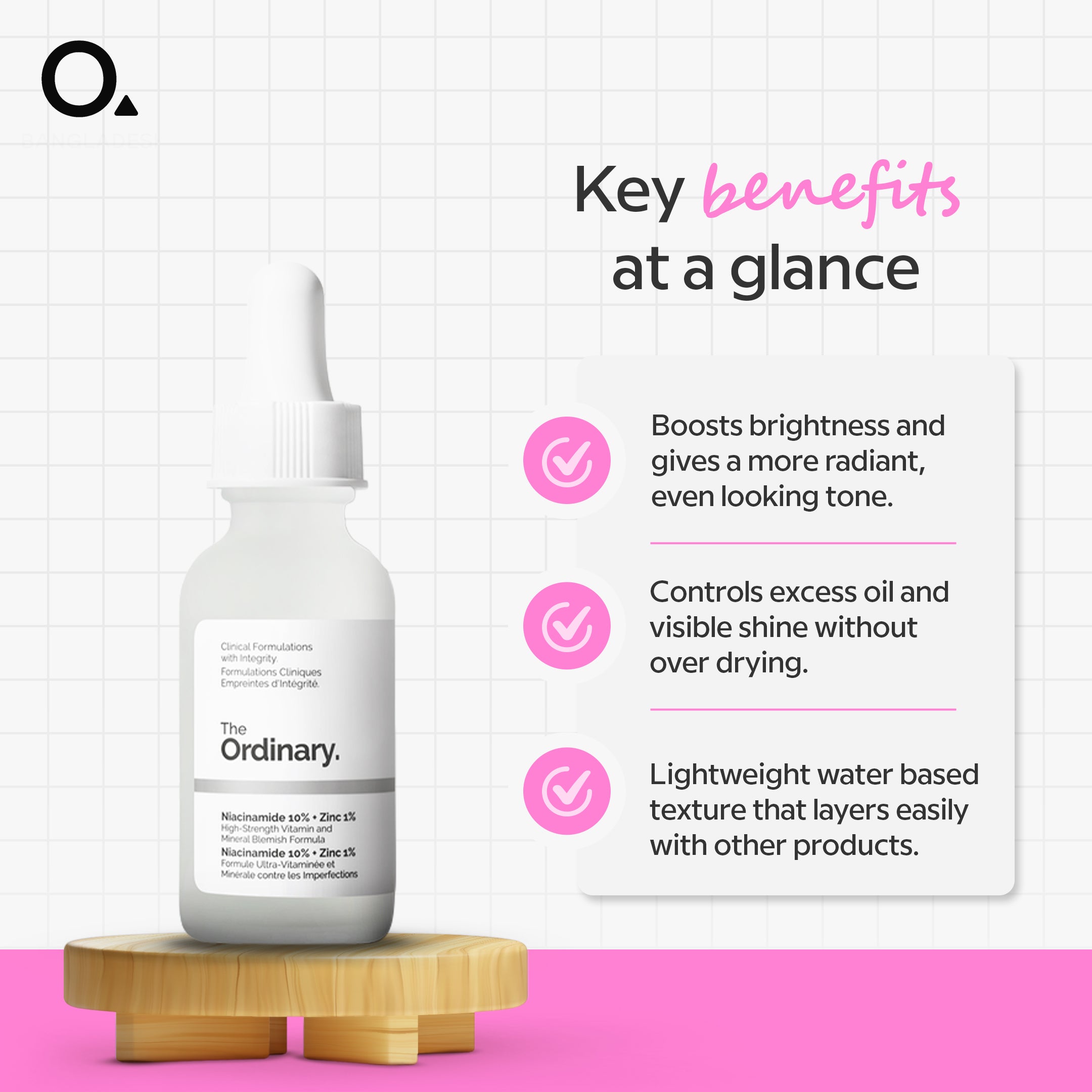 Our Niacinamide 10% + Zinc 1% formula is a water-based serum that boosts skin brightness, improves skin smoothness and reinforces the skin barrier over time. It contains a high 10% concentration of Niacinamide (vitamin b3) and zinc PCA.