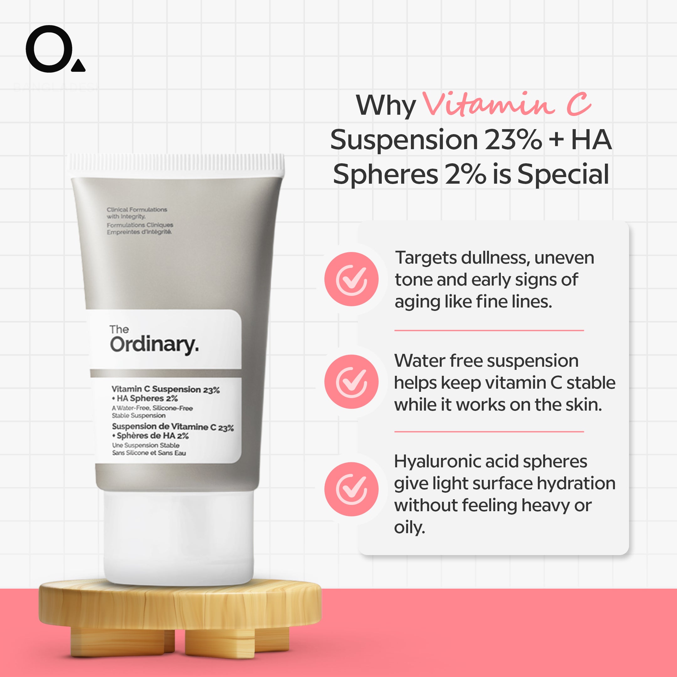 A Vitamin C brightening formula with HA spheres. Vitamin C Suspension 23% in HA Spheres uses direct vitamin C and hyaluronic acid to help visibly reduce signs of aging by...